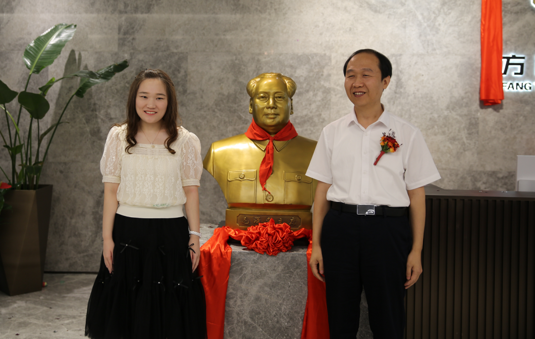 陳利濤、王倩為毛主席銅像揭幕